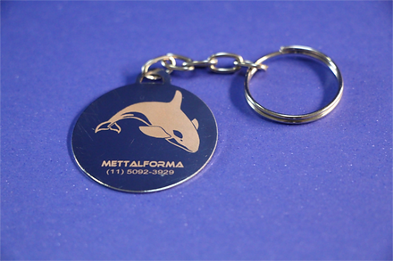 - Gravação a laser em chaveiros e pingentes metálicos